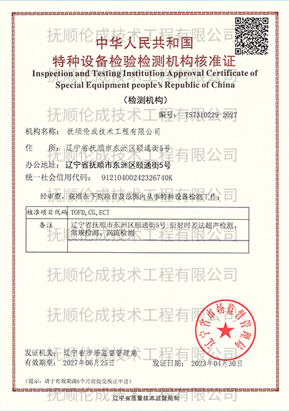 鎶氶『浼︽垚鎶鏈伐紼嬫湁闄愬叕鍙告垚绔嬩簬1996騫?鏈?0鏃ワ紝鏄叿鏈夌嫭绔嬫硶浜鴻祫鏍肩殑媯楠屾嫻嬫湁闄愯矗浠誨叕鍙搞傚叕鍙鎬笓涓氫粠浜嬬壒縐嶈澶囧帇鍔涘鍣ㄧ殑媯楠屾嫻嬶紙鍚悊鍖栬瘯楠岋級宸ョ▼銆傚叕鍙稿叿澶囩壒縐嶈澶囥佸緩璁懼伐紼嬨佺煶娌瑰寲宸ョ瓑琛屼笟鐨勬棤鎹熸楠屾嫻嬭祫鏍鹼紝鍏堝悗鍙栧緱杈藉畞鐪佸競鍦虹洃鐫g鐞嗗眬棰佸彂鐨勨滅壒縐嶈澶囨楠屾嫻嬫満鏋勬牳鍑嗚瘉鈥濓紱杈藉畞鐪佸競鍦虹洃鐫g鐞嗗眬棰佸彂鐨勨滄楠屾嫻嬫満鏋勮祫璐ㄨ瀹氳瘉涔︹濓紙CMA)錛涜窘瀹佺渷鐢熸佺幆澧冨巺棰佸彂鐨勨滆緪灝勫畨鍏ㄨ鍙瘉鈥濃︹?